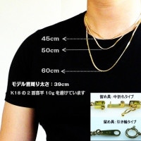 K18喜平2面シングル > 5g〜9g > 18金 喜平 ネックレス ブレスレット 2面 5g 選べるサイズ 引輪 造幣局検定付 メンズ レディース